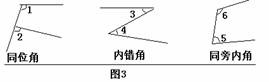 (1) 同位角,内错角,同旁内角。常见的图形如图3。