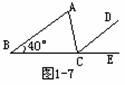 (5) 如图1-7,已知B、C、E在同一直线上,且CD//AB,若∠A=105°,∠B=40°,则∠ACE为( )