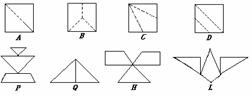 如图,将标号为A、B、C、D的正方形沿图中的虚线剪开后得到标号为P、Q、H、L的四组图形,试按照“哪个正方形剪开后能得