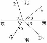 A、OA方向是北偏东400 B、OB方向是北偏西150