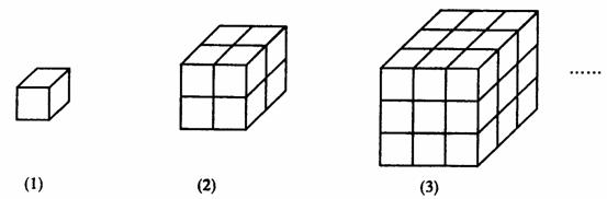 如图(3),共有27个小立方体,其中19个看得见,8个看不见……