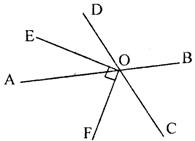 27、(10分)如图,直线AB、CD交于点O,OE平分∠AOD,OF⊥OE于O,若∠BOC=80°,求∠DOF的度数。