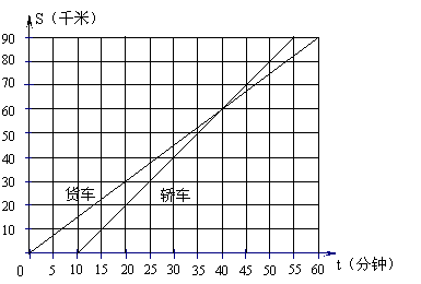 10、货车和轿车先后从甲地出发,走高速公路前往乙地. 上图表示行驶过程中,他们的行驶路程(千米)与所用时间(分钟)的关系的图象. 已知全程为90千米,根据图象上的信息得到的下列结论中,错误的是