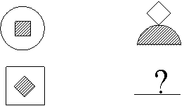 3. 这组图形不变的有两点,外面是一个大正方形,里面是一个小正方形.所以空白处也应是一个大正方形里面有一个小正方形.变化的有三点:一是大正方形一条对角线的方向.第1个图形是连接右上角和左下角,第2个图形是连接左上角和右下角,第4个图形还是连接左上角和右下角.可见对角线的方向是交替变化的,所以空白处的对角线应是连接右上角左下角的.二是圈住大正方形