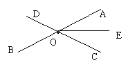 15、如图、直线AB、CD交于点O,OE是∠AOC的平分线,且∠EOC=270,则∠BOD= 度。