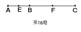16、如图,已知E是AB的中点,F是BC的中点,若AB=4cm,BC=9cm,则AC= cm,EF= cm,EC= cm。
