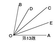13、已知∠AOB=80°,OC平分∠AOB,OD、OE分别是∠BOC、∠AOC的平分线,则∠DOE= 。
