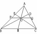 中,M为BC边的中点,O为AM上一点,BO延长交AC于E,CO延长交AB于D,PQ//BC,且PQ过O与AB、AC分别交于点P和Q , 求证:(1)PO=OQ;(2)DE//BC。
