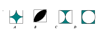 23、某正方形园地是由边长为1的四个小正方形组成的,现要在园地上建一个花坛(阴影部分)使花坛面积是园地面积的一半,以下图中设计不合要求的是( )