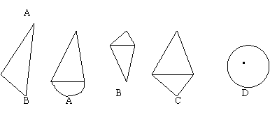 )绕斜边AB旋转一周,所得到的几何体的主视图是下面四个图形中的(只填番号)( )