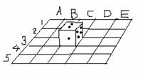 朝上, 骰子所在的位置是 4B或2B 。(2005湖北潜江)
