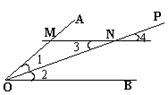 解:∵OP平分∠AOB ∴▄▄▄▄▄▄▄▄▄ 又∵MN∥OB ∴▄▄▄▄▄▄▄▄▄