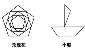 19.(本题5分)请用多边形为构件,尽可能构思设计一个独特且有意义的图案,并在图案下面写上一句贴切的解说词(设计出草图即可)。下图就是符合要求的两个图案。