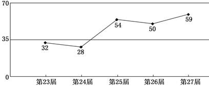 2.下图表示中国在近几届奥运会中所获奖牌的数量,那么相邻两届之间奖牌呈递增趋势的共有( )段。