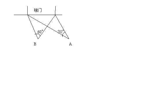 (6分)28.在足球比赛场上,甲乙两名队员互相配合,向对方球门进攻,当甲带球冲到A点时,乙已跟随冲到B点站位,从数学的角度看,此时甲是自己射门好,还是将球传给乙,让乙射门好?为什么?