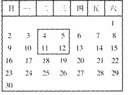 10、右表是2002年6月份的日历,现用一矩形在日历中任意框出 4个数