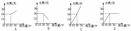2.某市为了节约用水,按以下规定收取水费:(1)每户每月用水量不超过20 m3,则每立方米水费1.2元;(2)每户每月用水量超过20 m3,则超过的部分每立方米水费2元,下面可以刻画出该户交纳水费随用水量的变化情况大致图象为: