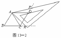 (2)当三角尺的两边分别与四边形ABCD的两边BC,CD的延长线相交于点E,F时(如图13-2),你在(1)中得到的结论还成立吗?简要说明理由.