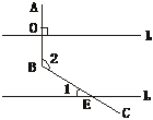3、如图所示,直线l1∥l2,AB⊥l1,垂足为O,BC与l2相交于点E,若∠1=43°,则∠2的度数是( )