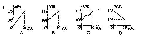 三峡工程在6月1日至6月10日下闸蓄水期间,水库水位由106米升至135米,高峡平湖初现人间.假设水库水位匀速上升,那么下列图像中,能正确反映这10天水位