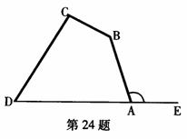 24.(本题6分)已知:如图,在四边形ABCD中,∠B+∠D=1800,延长DA到E,那么∠BAE与∠C有什么大小关系?说说你的道理.