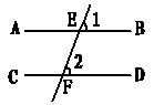 16.如图,直线AB、CD被EF所截,若∠1 =∠2,则∠AEF +∠CFE = 。