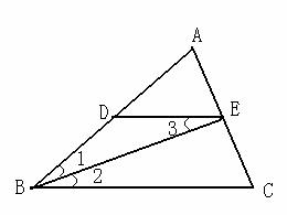 (8分)如图,BE是∠ABC的角平分线,DE∥BC,证明∠1=∠3