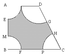 如图,四边形ABCD是一个直角梯形,∠A=∠B=90°,AB=10cm,BC=12cm,AD=7cm,四个顶点处扇形的半径分别为AE=BF=3cm,DG=CH=4cm,则图中阴影部分的面积为___________cm2.(答案用含π的结果表示)