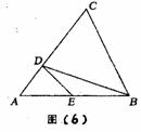 如图(6)所示,点D在AC上,点E在AB上,且AB=AC,BC=BD,AD=DE=EB,求∠A的度数。