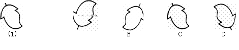 3、观察面图案,在A、B、C、D四幅图案中,能通过图案(1)的平移得到的是 ( )