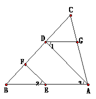 5、如图,已知∠ADE=∠B,∠1=∠2,试说明GF∥CD(6分)