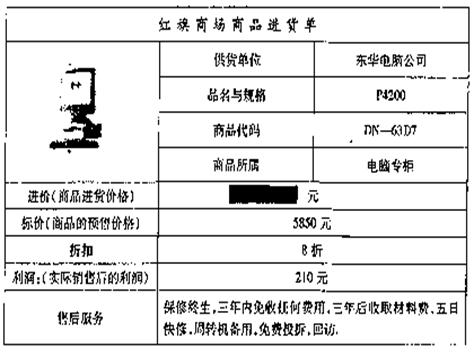 下面是红旗商场电脑产品的进货单,其中进价一栏被墨迹污染,读了进货单后请
