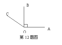12、如图,AO⊥BO,O为垂足,∠AOB: ∠BOC=3:2,则∠BOC=________;∠AOC=_______