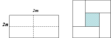 26、(8分)动手探索:25.我们把如下左图的一个长为2m,宽为2n的长方形,沿图中的虚线剪成四个小长方形,再按如下右图围成较大的正方形.