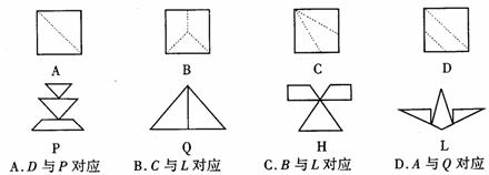 4.如图,将标号为A、B、C、D的正方形沿途中的虚线剪开后得到标号为P、Q、H、L的四组图形,是按照“哪个张方形剪开后能得到那个图形的对应关系”来判定,则下列4个结论中错误的是( )
