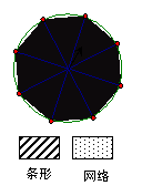 如图,是一个转盘,被分成8个相等的扇形,请你将转盘中的某些扇形涂成条形,涂成网络,使得自由转动转盘,当它停止时,指针落在条形区域的概率为