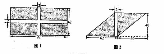 14、为了美化校园环境,争创绿色学校,某镇委托园林公司对本镇A、B两校进行校园绿化,已知A校有如图1的阴影部分空地、B校有如图2的阴影部分空地都需铺设草坪。现在甲、乙两地分别有需要的同种草皮3500平方米和2500平方米出售,且售价一样,若园林公司向甲、乙两地购买此种草皮,其路程和运费单价表如下: