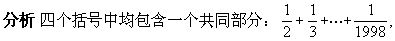 这启发我们将1,2,3,…,1998每连续四个数分为一组,再按上述规则添加符号,即