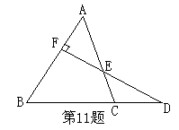 11.如图DF⊥AB,∠A=400,∠D=430,则∠ACB= 。