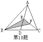 18、如图△ABC中已知D、E、F分别为BC、AD、CE的中点,且S△ABC=4cm2,则S阴影的值为( )