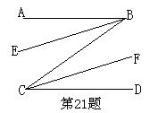 21、如图,已知AB∥CD,BE平分∠ABC,CF平分∠BCD,试说明DE∥CF的理由。