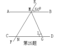 25、如图,AB∥CD,EF分别交AB、CD于M、N,∠EMB=500,MG平分