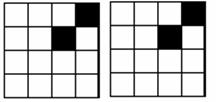 (6分)由16个相同的小正方形拼成的正方形网格,现将其中的两个小正方形涂黑(如图)。请你用两种不同的方法分别在下图中再将两个空白的小正方形涂黑,使它成为轴对称图形。