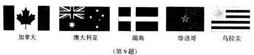 9.下列国旗中,是轴对称图形的是: