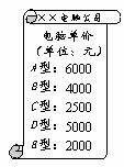 (3) 现知希望中学购买甲、乙两种品牌电脑共36台(价格如图所示),恰好用了10万元人民币,其中甲品牌电脑为A型号电脑,求购买的A型号电脑有几台.