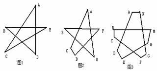 根据已经学过的知识我们知道星形(图1)中∠A+∠B+∠C+∠D+∠E=