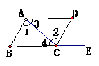 A. ∠3=∠4 B.∠B=∠DCE C∠1=∠2. D.∠D+∠DAB=180°