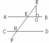 15、如图所示,已知直线EF和AB,CD分别相交于K,H,且EG⊥AB,∠CHF=600,∠E=30°,试说明AB∥CD.