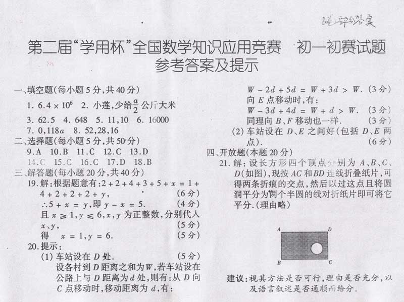 17.在古代生活中,有时也会用到不少数学知识,比如有下面这样一道题: