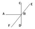 7.如图,AB⊥CD,垂足为B,EF是经过B点的一条直线,已 知∠EBD=145°,则∠CBE,∠ABF的度数分别为 [ ]